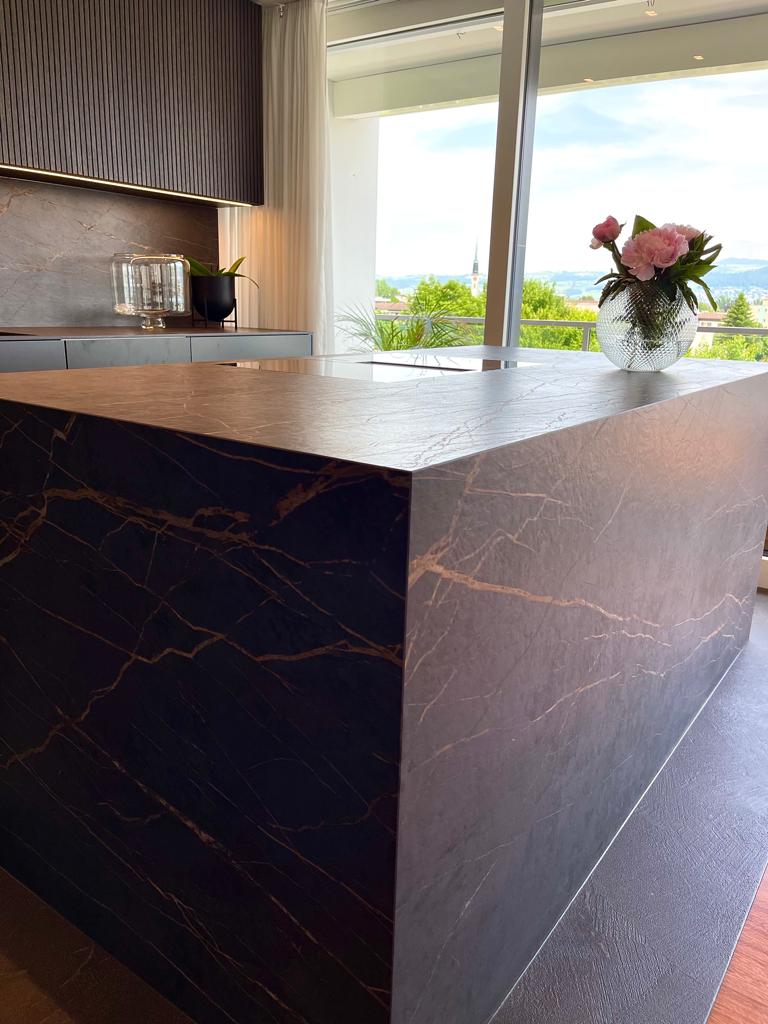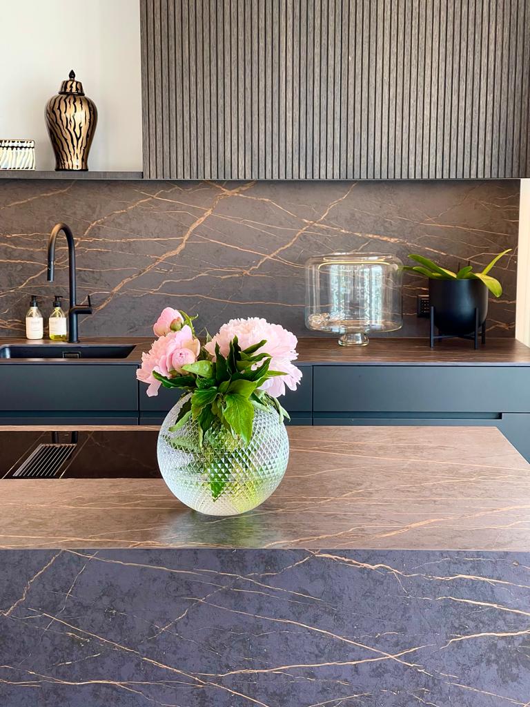 Now, please let me present to you our finished and ready kitchen, the one I blogged about renovating and then about the progress. It now has a timeless design and incredibly beautiful and smart design solutions. I really love how the kitchen turned out. Modern glamour yet cozy, personal and chic. The feeling is just unbeatable! The earthy colors and warmth was the key elements for me when I started the renovation. All details are in perfect harmony and I think it strikes the perfect balance between the stone and the wood.